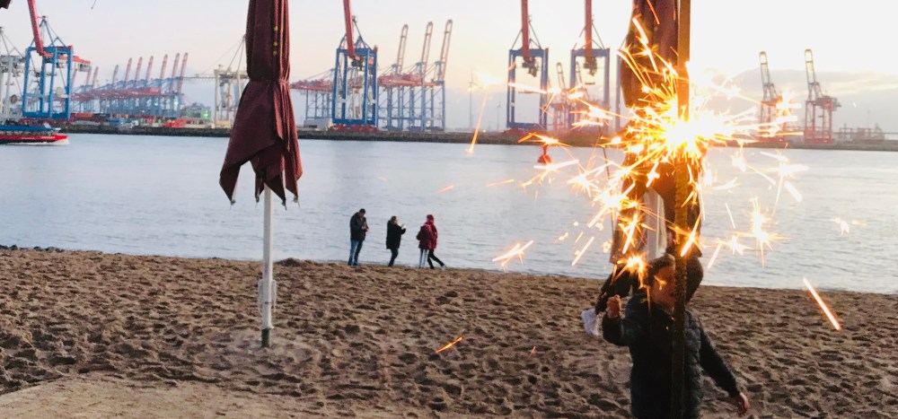 Pepe und ich haben das Jahr 2019 am Elbstrand verabschiedet. Schöner ging’s wohl kaum. Spontan, und richtig gut. 2020 wurde dann wieder am Wasser begrüßt mit Schifffahrt und Hafenblick. Mega!