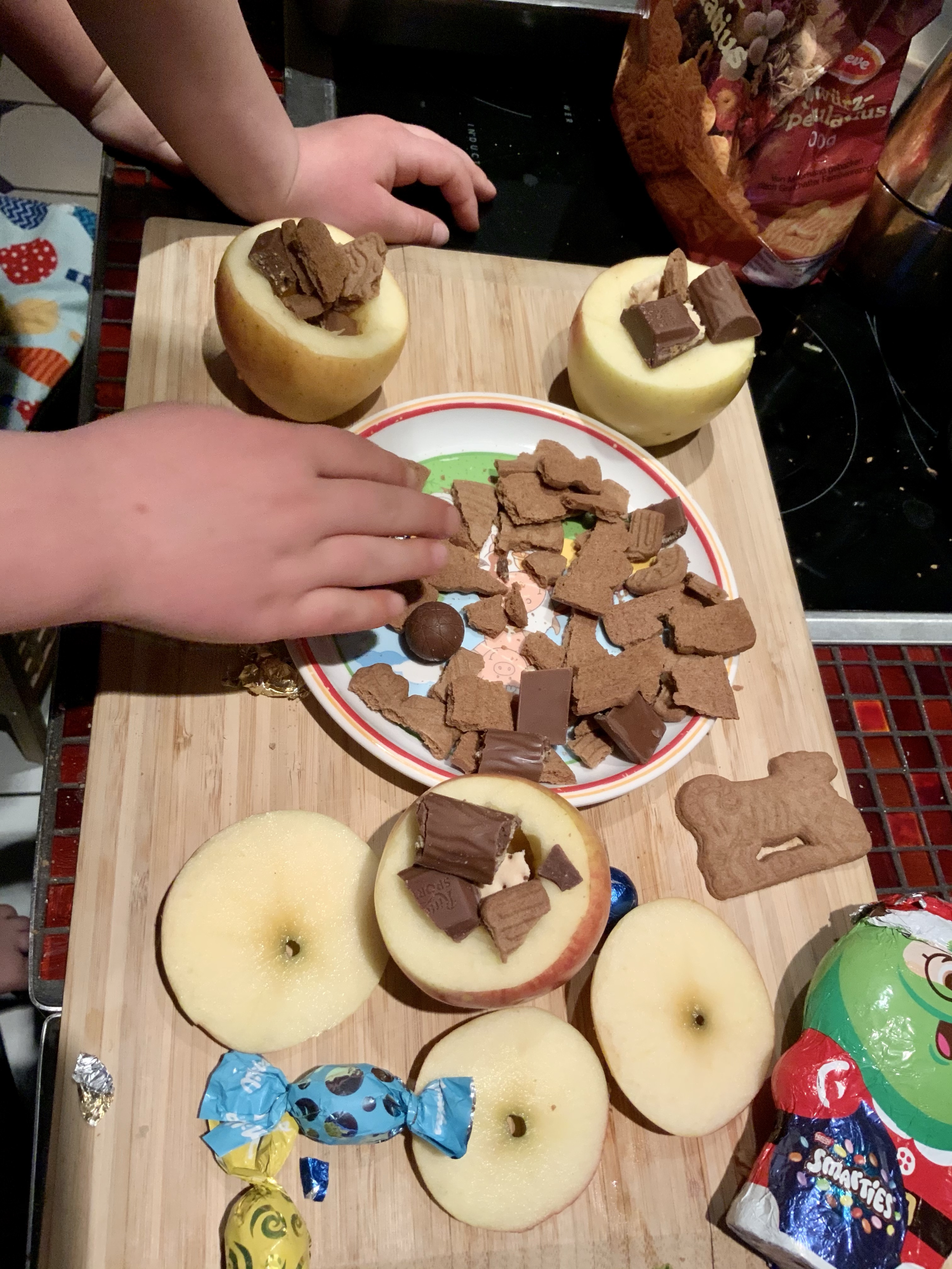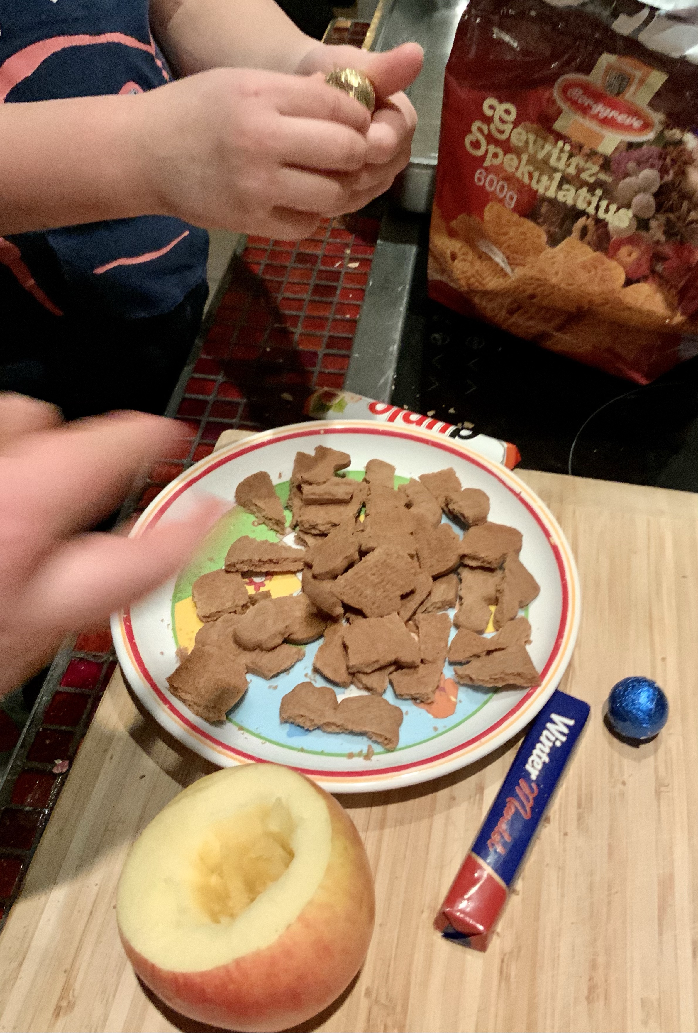 Tschüß, Weihnachten! Habt Ihr auch noch einen Schoko-Nikolaus, Weihnachtsschokolade und Spekulatius im Schrank? Wir nehmen Euch heute mit, wie wir dieses Jahr unsere Weihnachtssüßigkeiten lecker verwertet haben. Falls Ihr Interesse an diesem Schoko-Bratapfel Rezept habt und vielleicht gerne zusammen mit Euren Kinder kochen / backen möchtet, dürft Ihr jetzt gerne weiterlesen.