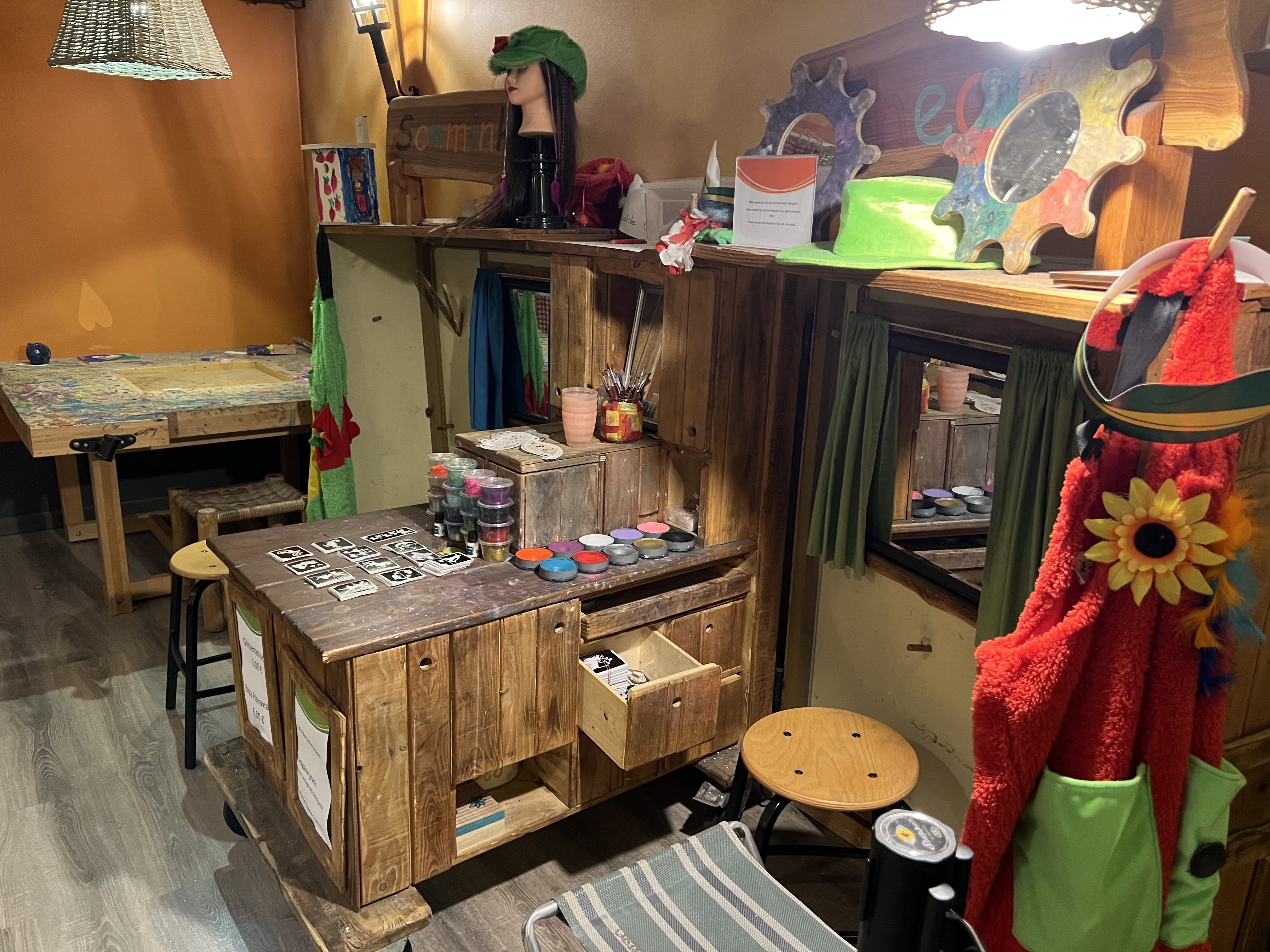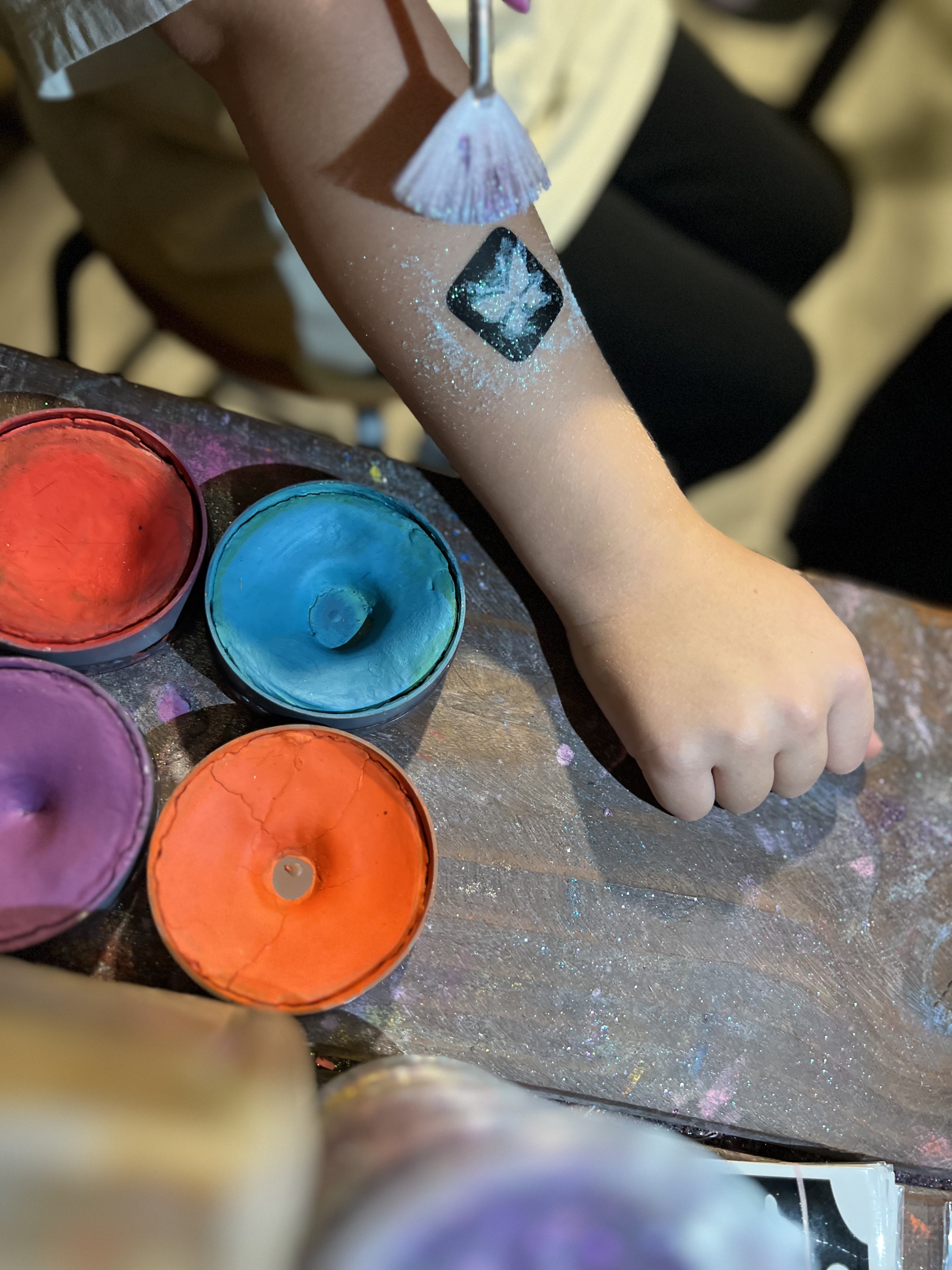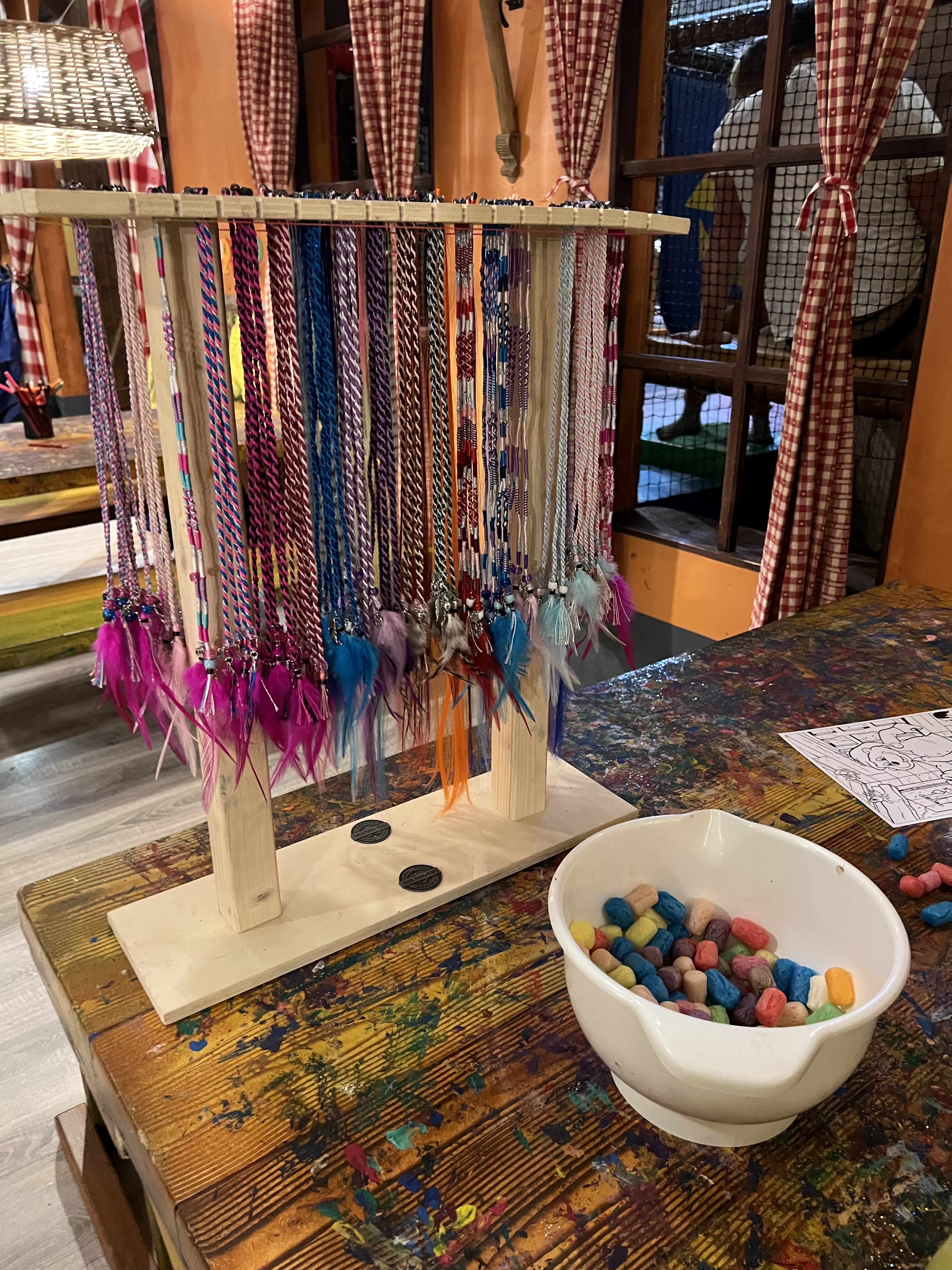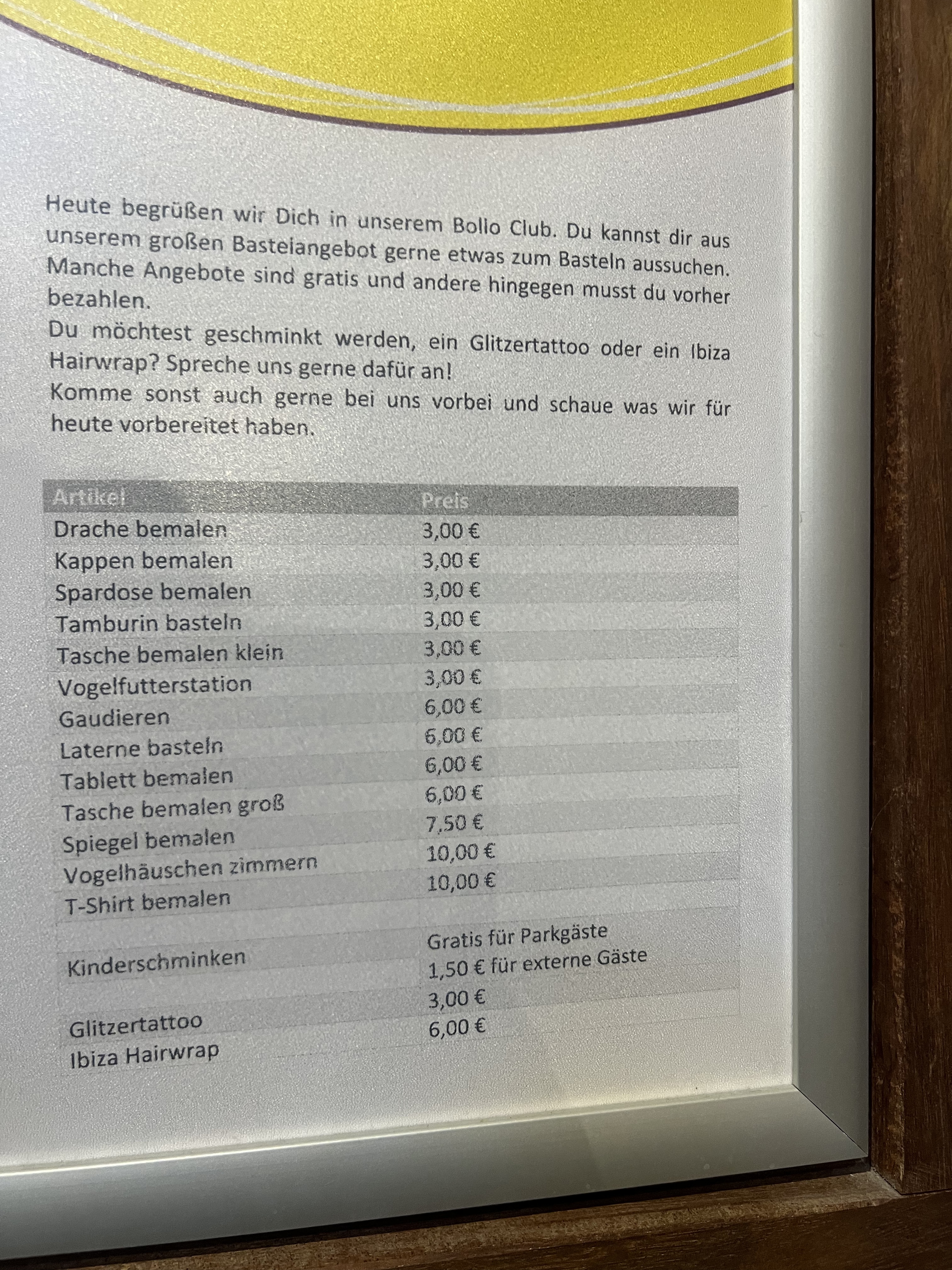 Abends wartete schon das nächste Highlight auf uns: Der Indoor-Spielplatz musste unbedingt bespielt werden. Mit der letzten Energie des Tages, und davon hatten die Kids eine Menge! Vom Bällebad über Kletterturm, Karussell, Cage Soccer und Basketball, Trampolin über ein digitales Wurfspiel, es gibt dort alles zum Toben und Spielen. Doch davon nicht genug. Rechts hinten in der Ecke – wir hätten es beinahe nicht entdeckt – befindet sich der Bollo Club, ein Paradies für alle Mal- und Bastelliebhaber. Zwei ganz liebe Betreuerinnen und eine tolle Ausstattung kümmern sich darum, dass der Kreativität keine Grenzen gesetzt werden. Die Angebote sind kostenlos, bis auf vereinzelte Dinge wie z.B. Glitzertattoos oder Gegenstände, die man bemalen kann. Diese sind dann mit Preis ausgezeichnet. Im Preis mit enthalten ist aber alles andere im offenen Angebot, teilweise auch mit angeleitetem Programm (Zeitplan hängt aus), wie z.B. Pfannkuchen oder Apfeltaschen backen. Man kann im Bollo Club des Ferienpark Landal Sonnenberg auch den Kindergeburtstag feiern, wo als Überraschungsgast zum Schluss Bollo (das Parkmaskottchen) höchstpersönlich erscheint. Für die kleineren bestimmt cool! Während unsere Jungs also noch tobten, wurden unsere Mädels geschminkt und Mal- und Bastelmaterialien versorgt.