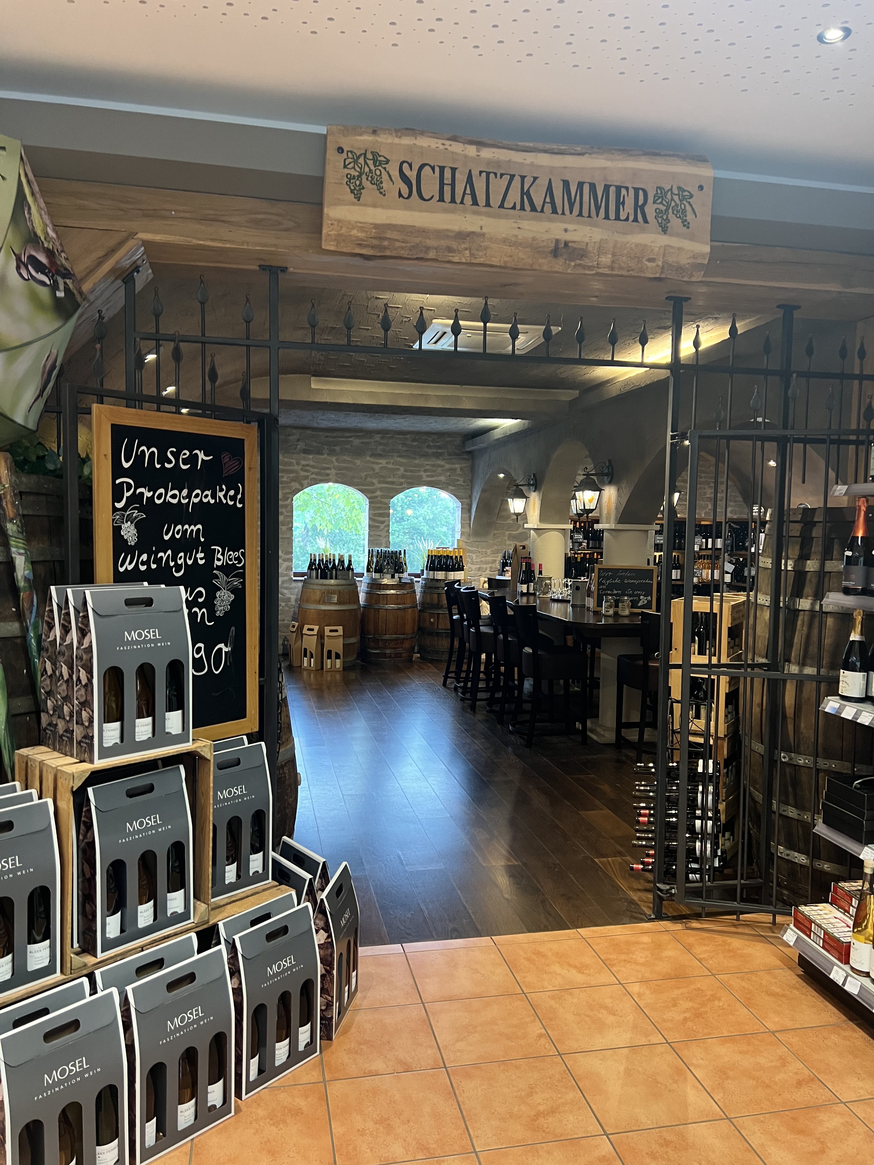 Begonnen hat das Wochenend-Kurzurlaubs-Feeling am Freitagabend, als wir an der Unterkunft ankamen. Die letzten Kilometer zum Park wurden begleitet von einer grandiosen Aussicht übers Moseltal. Mega! Kein Wunder, dass es hier ein Moselkino gibt, darüber später mehr. Im Ferienpark angekommen, mussten der 6-jährige Pepe sofort die große Rutsche testen. So kamen die Kinder schon auf ihre Kosten, bevor wir überhaupt im Ferienhaus angekommen waren. Nach dem ersten Austoben nach der Fahrt, inspizierten wir unsere von außen eher unscheinbare Unterkunft: Der Ferienpark Landal Sonnenberg besteht aus vielen kleinen Ferienhäusern mit jeweils eigenem Garten. Wie die anderen Häuser sind, kann ich nicht beurteilen. Unseres war für uns innen perfekt eingerichtet: drei gemütliche Schlafzimmer, eine große offene Wohnküche, Terrasse, Kamin … und unser Highlight: Die private Sauna. Zur Begrüßung stand ein Willkommensgruß mit einem heimischen leckeren Moselwein direkt aus Leiwen bereit. So konnten wir das Wochenende mit einem angenehmen Dreiklang entspannt einläuten: ein Gläschen Wein, Sauna & Kamin.