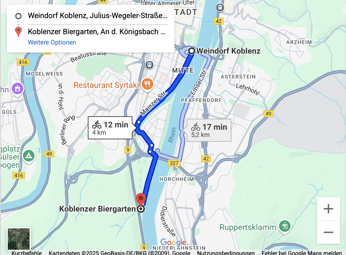 Auf jeden Fall, da der Koblenzer Biergarten direkt am Radweg liegt.